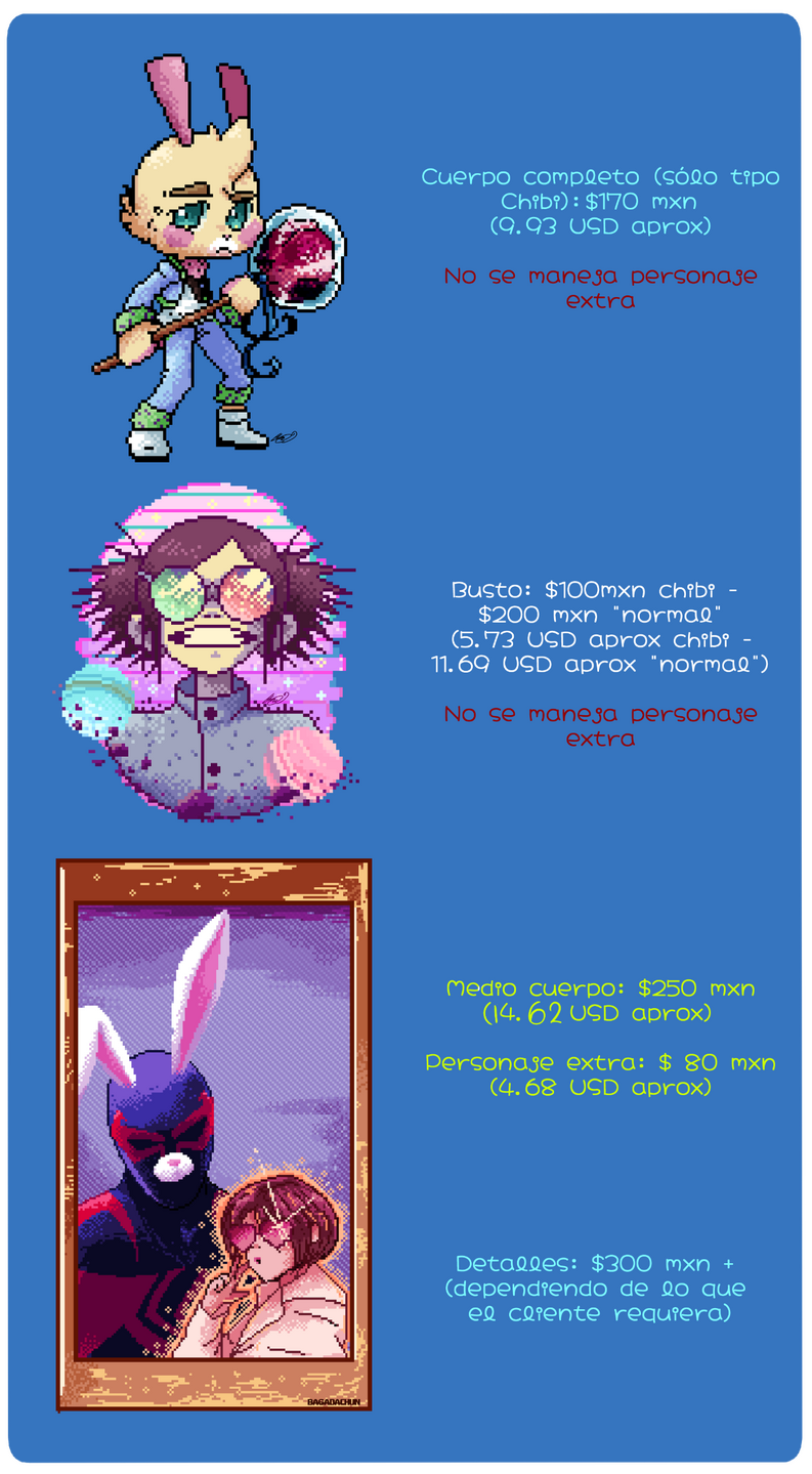 (15.78 USD aprox)Personaje extra: $150 mxn